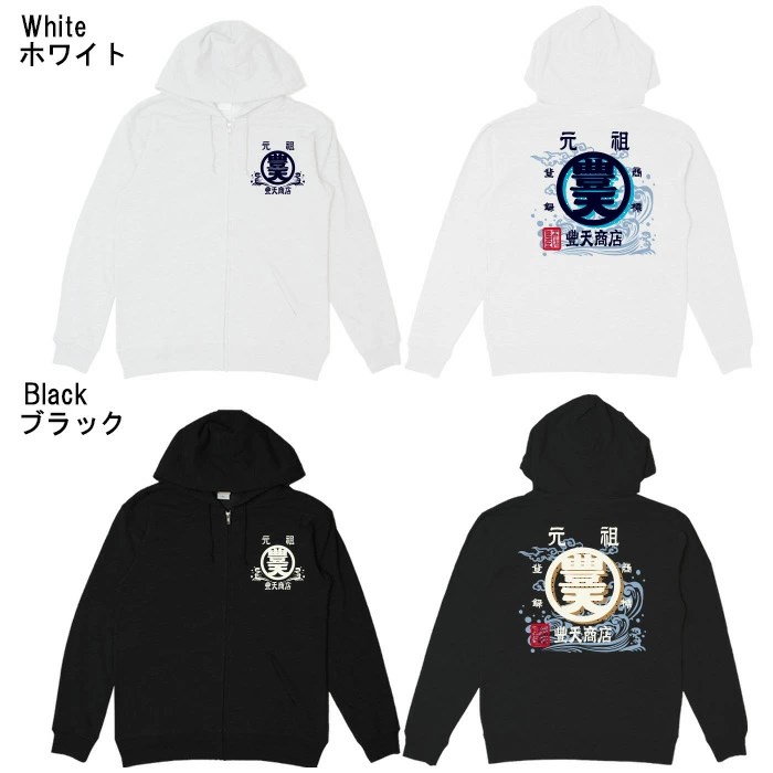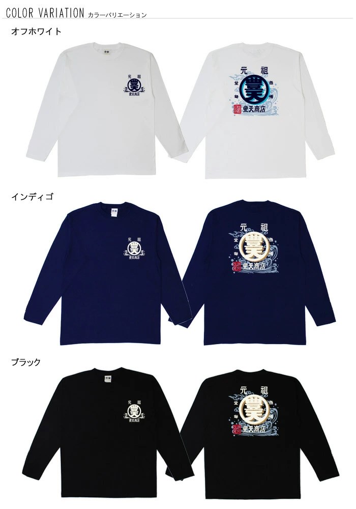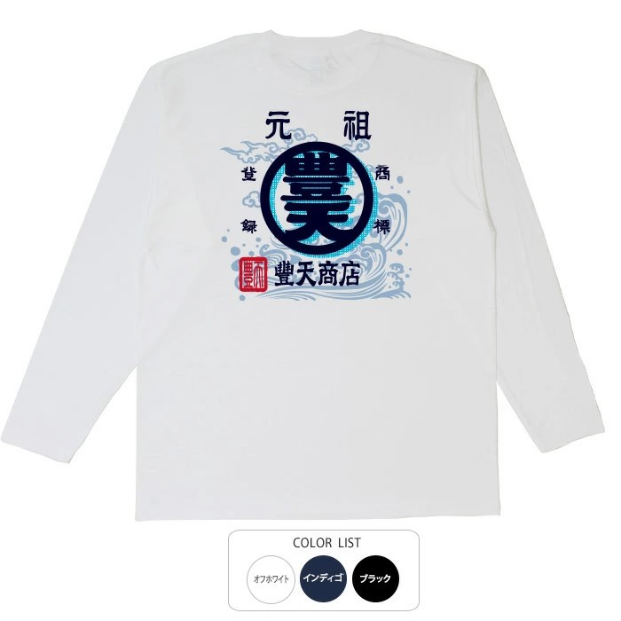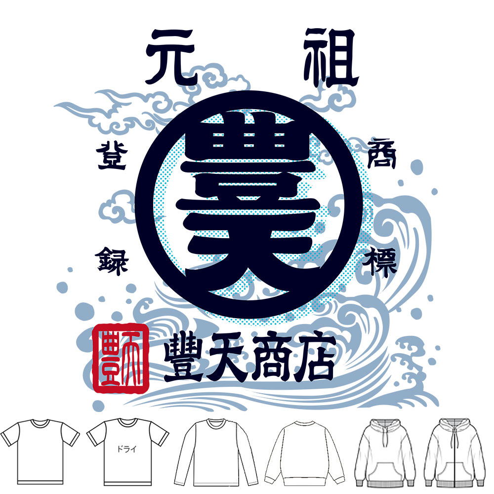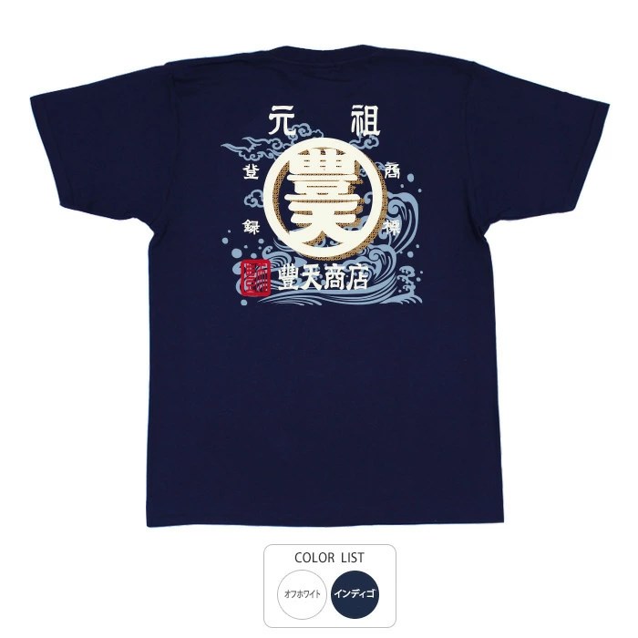 おもしろtシャツ和柄元祖豊天商店元祖豊天商店、前掛けで採用された豊天商店の代表柄に波と雲をプラスしてパワーアップ!豊天荒波Tシャツ半袖ぶーでん※子供用はお取り扱いが御座いません。